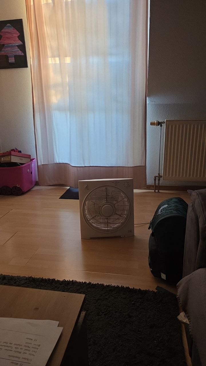 Ventilator auf die Fensterbank und kühle Luft rein pusten. |