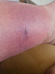 So ein fieses kleines mistvieh. Der Stich ist komplett entzündet. Ich habe Wasser in dem Bein und kann kaum laufen |