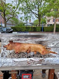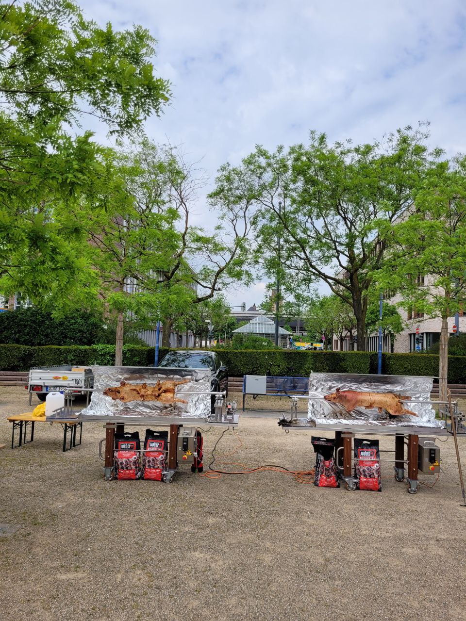 Was so ein richtiges Spanferkel sein will, muss sich da morgens schon langsam drehen, wenn es ab 17 Uhr gegessen werden möchte. |