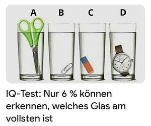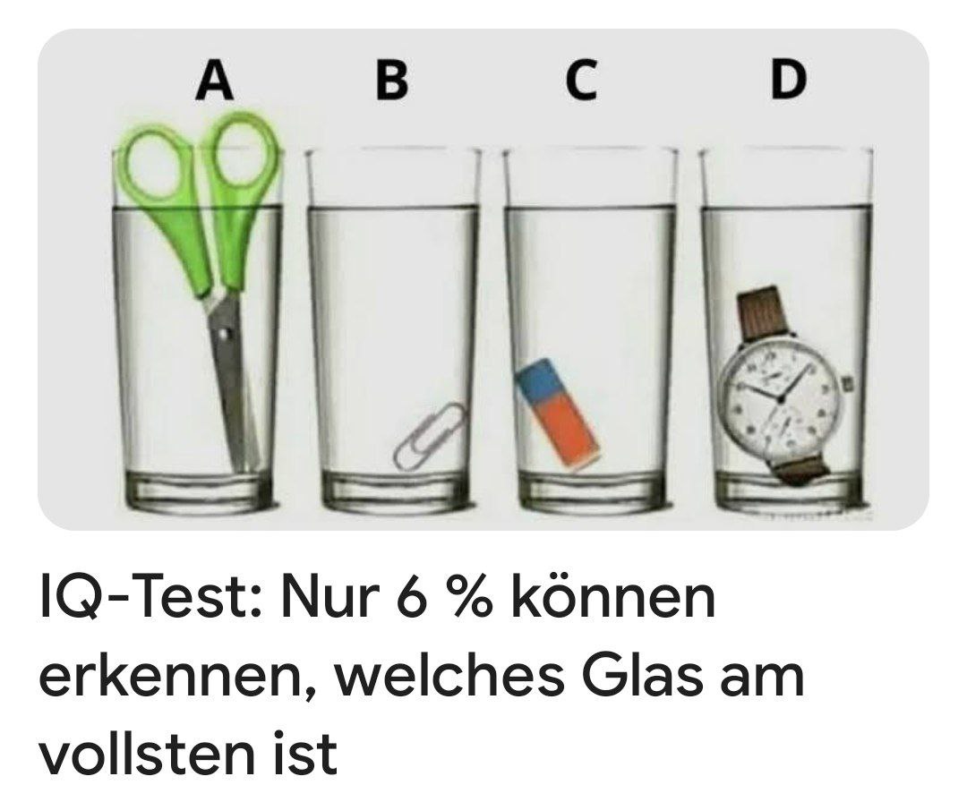 Und holt man alle Dinge aus dem Glas bleibt bei B die höchste Füllmenge |