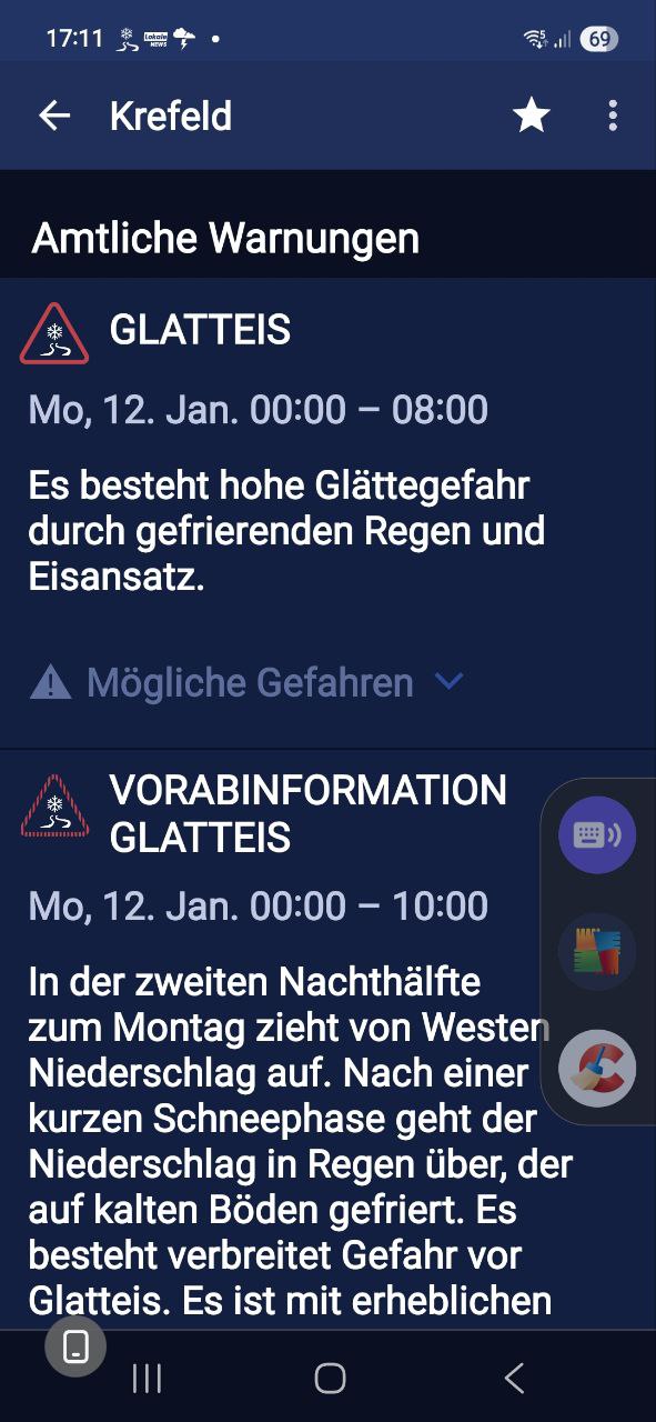 https://warnung.bund.de/meldung/dwd.2.49.0.0.276.0.DWD.PVW.1768146960000.c28c4836-5d40-411b-a648-c974d7b48a5e.MUL/Amtliche+UNWETTERWARNUNG+vor+GLATTEIS |
