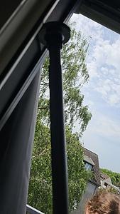 Du meinst, das diese Stange mit dem flachen Endstück an der Decke festgeschraubt werden soll? |