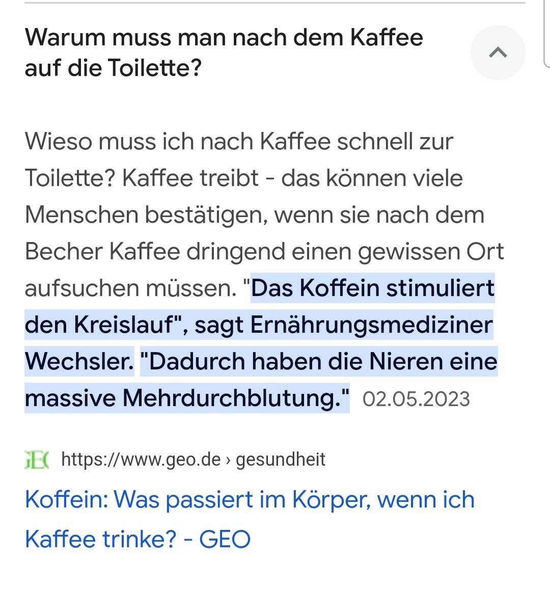 Warum muss man nach dem Kaffe kaken? |