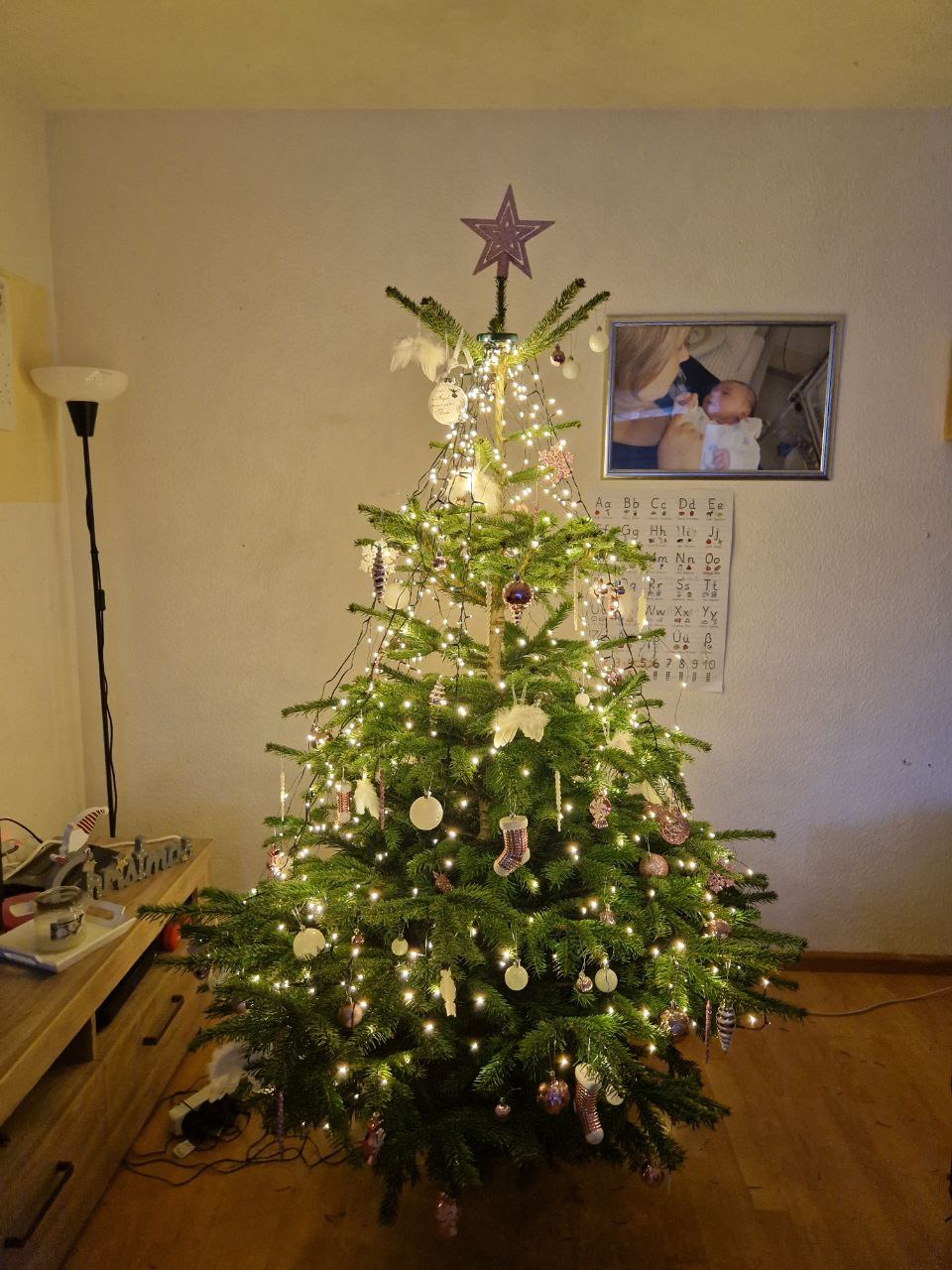 Sind noch nicht fertig. Die Mädels schmücken noch, damit Oma ihn gut sehen kann |