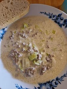 Ist das eine Käselauchsuppe? |