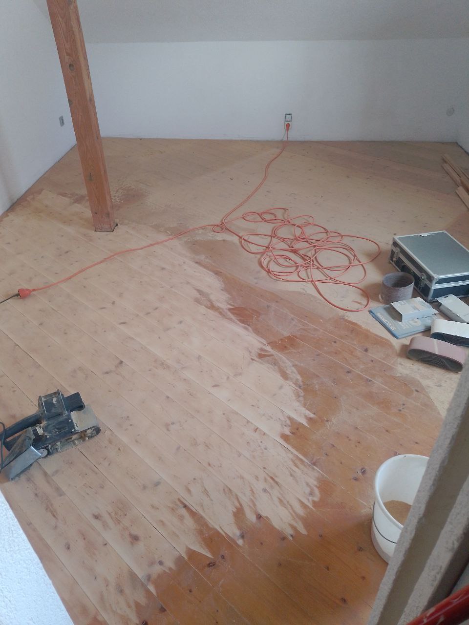 Das letzte Zimmer Renovieren 🤘 Ich schleife den Boden. Damit Ich ihn wieder neu behandeln kann. Wie man sieht, ist er nicht mehr ganz so hübsch. |