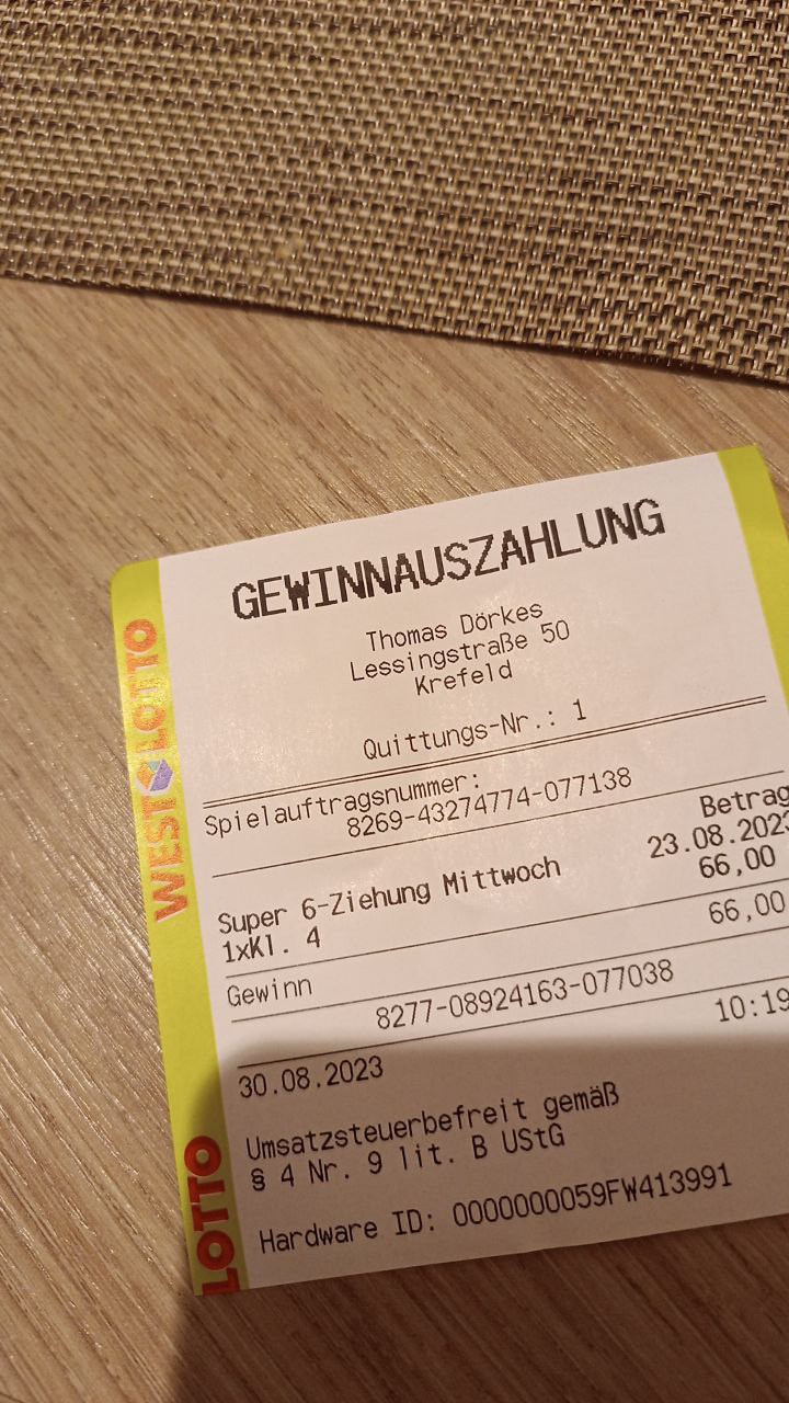 Super. 👍👍👍 66 Euro. Schnapszahl 😂 |