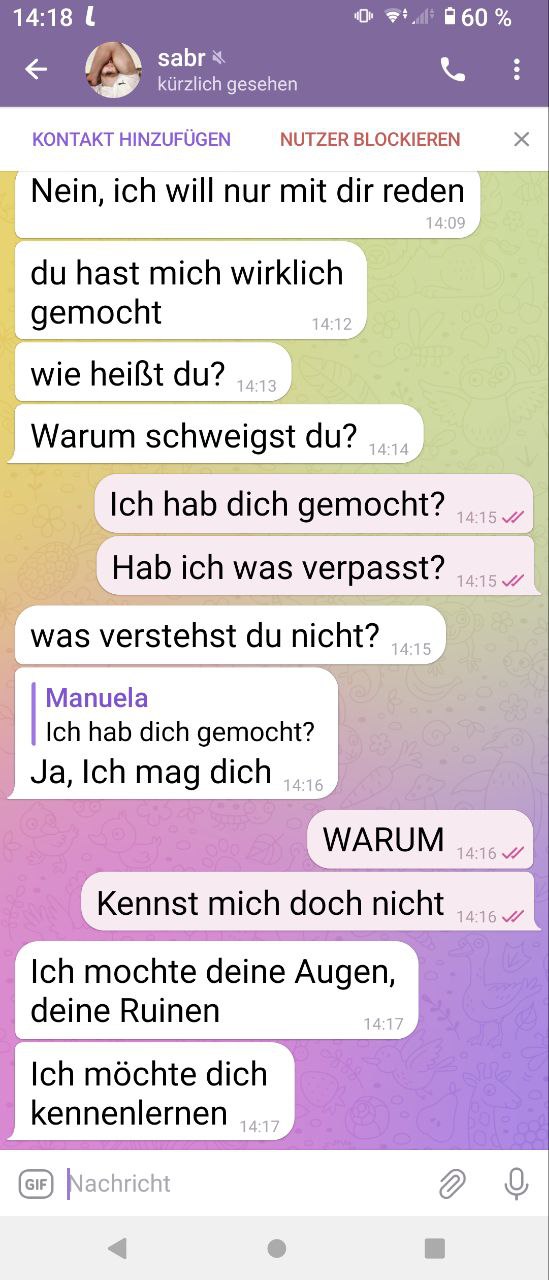 Ja, aber unter allen, die Sie mögen, habe ich Ihnen meine Bilder geschickt |