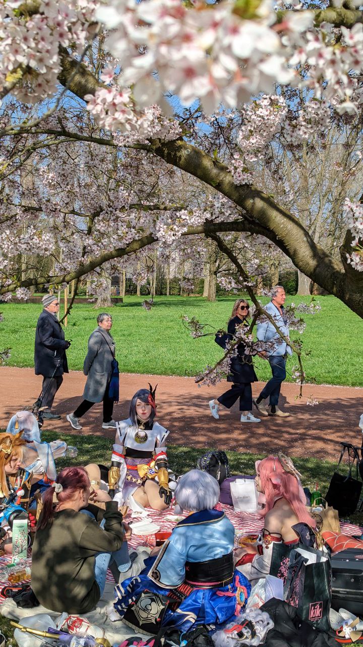 ya. Schöne sonnige Atmosphäre in den Osterferien. Ich werde in einen schönen Garten in Düsseldorf gehen. |