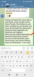 Wenn du eine englischsprachige Nachricht bekommst, drückst du kurz auf die Nachricht, dann kommt eine Liste und du drückst dann auf übersetzen. 2 von unten |