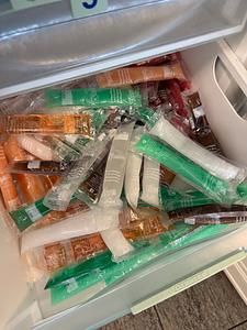 So sehen die bei mir auch teilweise aus - im "rohen" Zustand kann man die ja so herrlich in die Ecken des Eisfachs quetschen....dumdidum.... |