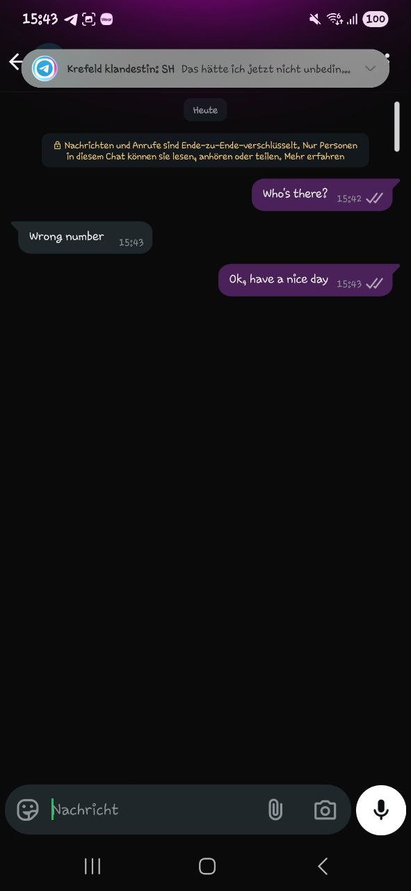 {"message_id":48301,"from":{"id":5651947712,"is_bot":false,"first_name":"❤️Eule","last_name":"Jessi💙","username":"ProudMommyOfTwo"},"date":1753883142,"chat":{"id":-623529108,"type":"group","title":"Krefeld klandestin","all_members_are_administrators":false},"text":"War ja falsche Nummer"} |